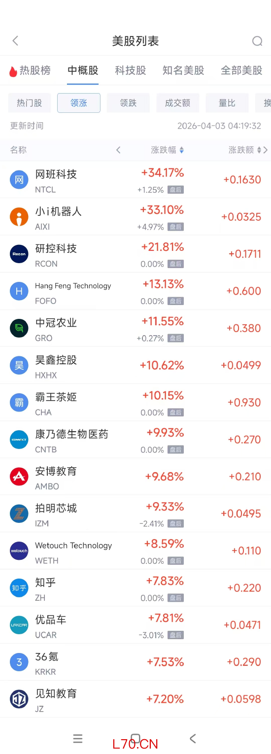 (截图来自新浪财经APP 行情-美股-中概股热门板块)下载新浪财经APP