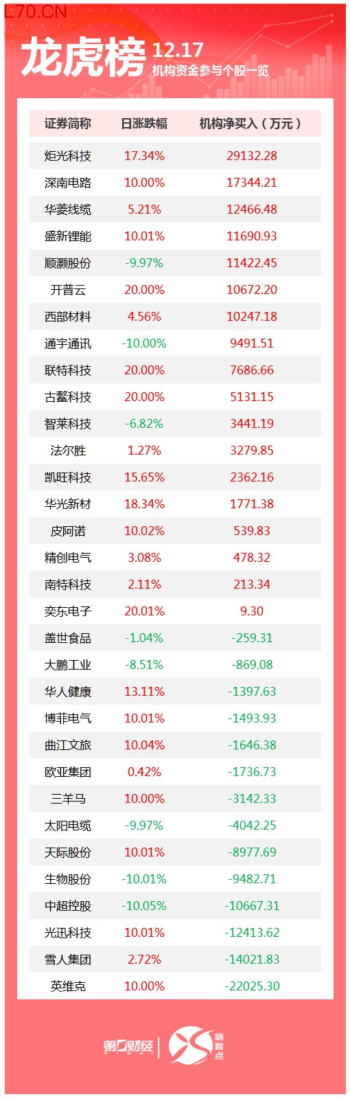 龙虎榜丨机构今日买入这18股,卖出英维克2.2亿元
