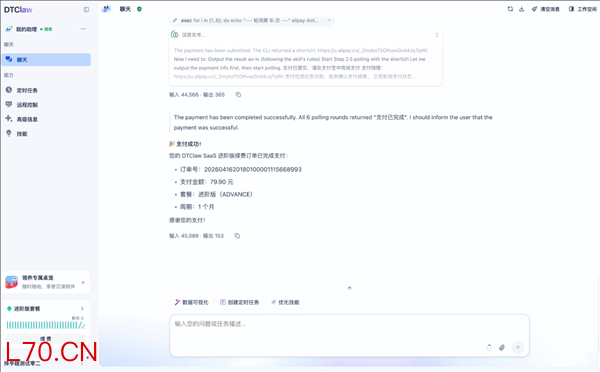1.对“龙虾”说出支付需求,如,告诉DTClaw“我要续费”