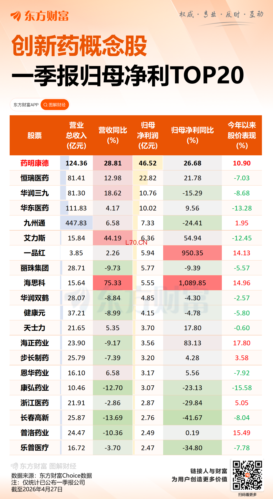 4月28日早盘,市值超3000亿的药明康德“杀疯”了。A股开盘5分钟后,药明康德封死涨停,H股一度暴涨超17%。公告显示,该公司昨晚公布的第一季度净利润同比增长26.68%。整个创新药板块也表现不俗,板块指数一度大涨超2%。
