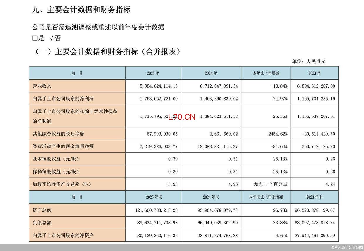 西部证券2025年归母净利润17.54亿元 同比增长24.97%